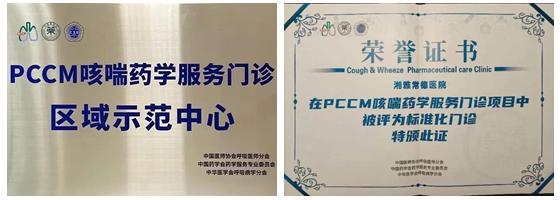 2024年5月24日,湘雅常德医院正式被授牌为“PCCM咳喘药学服务标准化门诊”,标志着医院药学服务门诊通过国家CWPC项目组的资质认证,成为PCCM咳喘药学服务标准化门诊单位。