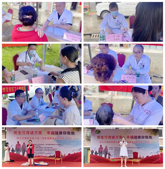 为提升人民群众健康意识和水平,6月25日,湘雅常德医院在柳叶湖旅游度假区七里桥街道戴家岗社区开展服务百姓健康活动。此次活动配合常德市计划生育协会、柳叶湖旅游度假区计划生育协会联合开展,由医院事业发展部牵头,湘雅委派专家、中西医结合科主任蒋荣鑫副教授、儿科齐飞主任医师、产科邬吉婷副主任医师、肾病内科郭丹副主任医师、眼科卓秋华副主任医师、泌尿外科刘理专副主任医师、整形美容科激光医师谢彩艳、中西医结合科护士长刘艳朋等11人组成健康服务团队参加。