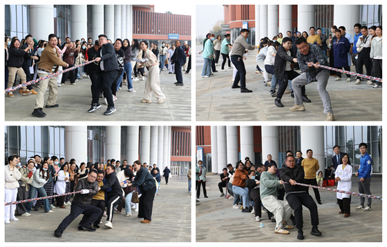 赛场上旌旗招展,呐喊助威声此起彼伏。随着裁判哨响,队员们紧握长绳、稳扎马步,身体一致后倾,齐心协力。从临床医护到行政后勤,大家心往一处想、劲往一处使,在绳与力的较量中凝聚智慧,在汗与笑的交织中深化情谊。场边啦啦队挥舞标语、齐声助威,每一次绳结移动都牵动人心,现场气氛热烈激昂。