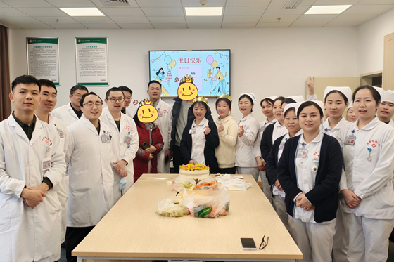 年过七旬的王大爷(化名)感动不已:“住院期间,你们像家人一样照顾我,还专门为我过生日,这份心意太难得了!”另一位患者张女士(化名)接过蛋糕时热泪盈眶:“生病住院本来很焦虑,但这里的医护人员一直鼓励我、关心我。今天还能和护士一起过生日,心里特别踏实、温暖,谢谢你们!”