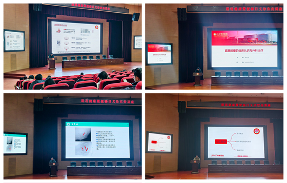 同期,普外科二区在学术报告厅举办了专题讲座。晏建华副主任医师以《直肠脱垂的临床认识与外科治疗》为题,通过图文并茂的PPT,深入浅出地讲解了直肠脱垂与慢性便秘之间的恶性循环关系,并系统介绍了从保守治疗到微创手术的分阶段治疗方案。他提醒,直肠脱垂患者多伴有严重排便困难,切勿盲目自行回纳,应及时寻求专业外科干预。郭绍春主治医师围绕《慢性便秘的诊疗》展开系统讲解,从慢传输型、出口梗阻型及混合型等便秘分型入手,纠正了“吃泻药就是通便”的常见误区,强调慢性便秘需要“阶梯化、个体化、综合化”的治疗策略。针对家长普遍关注的儿童便秘问题,刘轩主治医师以《儿童便秘》为题进行专题分享。他指出,儿童功能性便秘发病率逐年上升,常表现为“憋便”及排便恐惧心理,并从饮食结构调整、排便习惯训练(如定时如厕、足底支撑)到渗透性泻剂的合理使用等方面,为家长提供了科学、安全的家庭干预建议,特别提醒避免长期使用开塞露产生依赖。