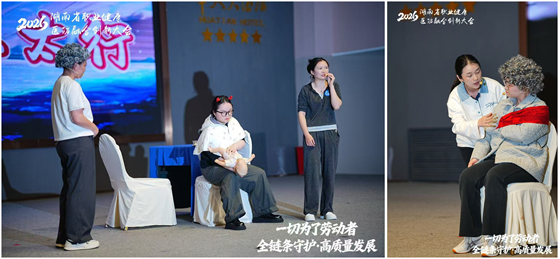 儿科护理团队邱瑶护士长及吴石根、张文琦、姚碧玲带来的作品《这届家长不太行》,聚焦婴幼儿异物窒息急救这一高风险家庭场景,创新采用“情景剧+婴儿内心OS”的趣味叙事方式,真实还原家庭喂养中的安全隐患。剧目以奶奶边刷短视频边喂食、宝宝不慎被食物卡喉的生活化场景展开,通过家人慌乱施救与妈妈规范实施婴儿海姆立克急救法的对比,直观揭示了家庭看护中的常见盲区,强调了规范急救的重要性。