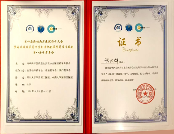 近日,由海峡两岸医药卫生交流协会医院药学专业委员会主办,台湾临床药学会、香港药学会、澳门药学会联合主办的第八届学术年会“同心圆”科普展示赛在湖南长沙圆满落幕。本次大赛以“科普同心 药师护航”为主题,旨在激发海峡两岸暨香港、澳门青年药师的科普创作热情,提升公众健康素养。比赛分为初赛和现场展示两个阶段,涵盖药学科普短视频、情景演绎、动画图解等多种形式。湘雅常德医院药剂科副主任药师、儿科专科临床药师熊亚群,凭借出色的科普作品与现场表现,从海峡两岸暨香港、澳门的众多优秀青年药师中脱颖而出,荣获“最佳原创创意奖”及“杰出作品奖”两项殊荣!