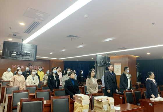 “我郑重宣誓,严格遵守医疗行业卫生建设‘九不准’,不准将医疗卫生人员个人收入与药品和医学检查收入挂钩……”讲课结束后,在孙道同志的带领下,40名党员全体起立庄严宣誓,表示将严守规章制度,不忘医者初心,牢记健康使命,永葆廉洁行医本色,自觉抵制行业不正之风。