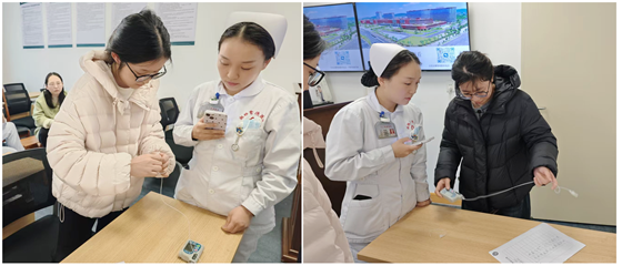 在实操与理论并重的培训环节中,焦汝婷泵师聚焦临床常见重点与难点,系统讲解了院内胰岛素泵使用的关键注意事项;针对低血糖这一临床急症,通过情景模拟演示了应急处理流程,有效提升了参训人员对低血糖的快速识别与及时干预能力。为巩固学习成效,培训结束后组织进行了理论考核,随后参训护士分组进行操作练习,科室总带教陶泽琳全程给予指导。练习结束后统一进行操作考核,全面评估参训护士对核心知识及操作技能的掌握程度,确保学以致用、知行合一。