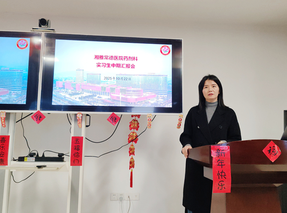 据悉,湘雅常德医院药剂科自2018年起,持续接收来自湖北医药学院、南华大学等多所院校的药学实习生,2025年度共接收20名。科室始终坚持“以学生为中心”,推行“一对一”导师制,注重临床实践与科研能力并重。本次中期汇报的顺利举行,标志着实习生培养工作稳步推进,也为科室高质量药学人才培养注入了新活力。