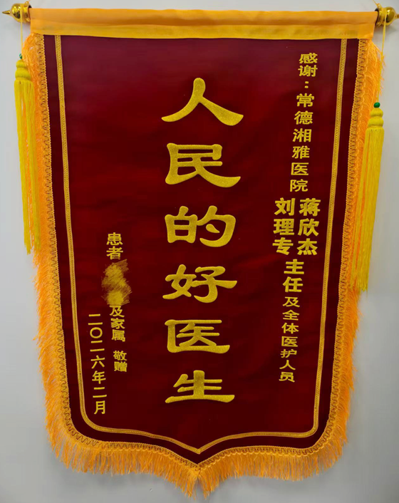 一面锦旗,承载着一份沉甸甸的认可;一句感谢,凝聚着前行的动力。湘雅常德医院泌尿外科始终坚持“以患者为中心”的服务理念,以精湛的医术守护患者健康,以温暖的服务化解患者心结。未来,科室将继续秉持医者初心,不断提升医疗质量与服务温度,用心守护每一位患者的健康与尊严。