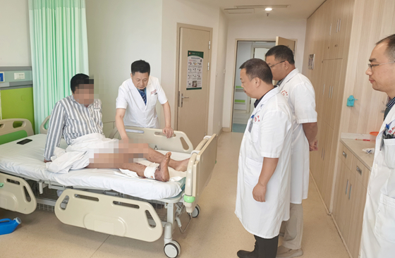 近日,湘雅常德医院骨科团队成功为一名38岁右下肢严重开放性损伤的男性患者完成三次高难度手术,不仅保住了濒临截肢的右腿,更使患者在术后40天实现拄拐短距离行走,标志着我院在严重肢体创伤救治方面的技术与护理水平再上新台阶。此次手术的成功既得益于唐举玉教授、吴攀峰教授等顶级专家的精湛技术,也凸显了依托中南大学湘雅医院骨科同质化管理所带来的显著优势。