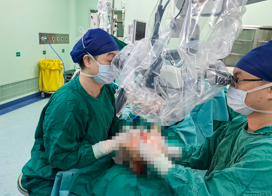第一次手术:吴攀峰教授在显微镜下进行血管吻合