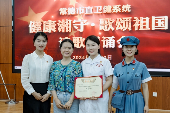 为庆祝新中国成立75周年,9月30日,市直卫健系统举办了一场以“健康湘守,歌颂祖国”为主题的诗歌朗诵比赛。由湘雅常德医院选送的作品《穿越时空的旋律-健康中国 医者同行》斩获佳绩...