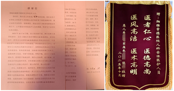 近日,湘雅常德医院儿科收到了一封长达三页的感谢信和一面写有“守护生命渡难关”的锦旗。信中,患儿家属用真挚而朴实的语言,回顾了孩子住院期间的点点滴滴,表达了对儿科全体医...